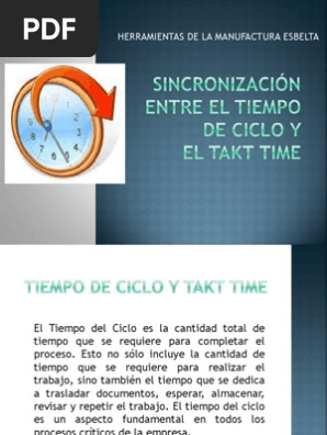 Tiempo ciclo takt time. Utilice este formulario para calcular el tiempo takt en sus instalaciones. Calcule el ritmo de producción el tiempo takt es el máximo ciclo de tiempo permitido para producir un producto y poder cumplir la demanda. Definición de takt time así pues el takt time se define como el tiempo en que una pieza debe ser producida para satisfacer las necesidades del cliente o en otras palabras es la frecuencia en la cual un producto acabado abandona la línea de producción.