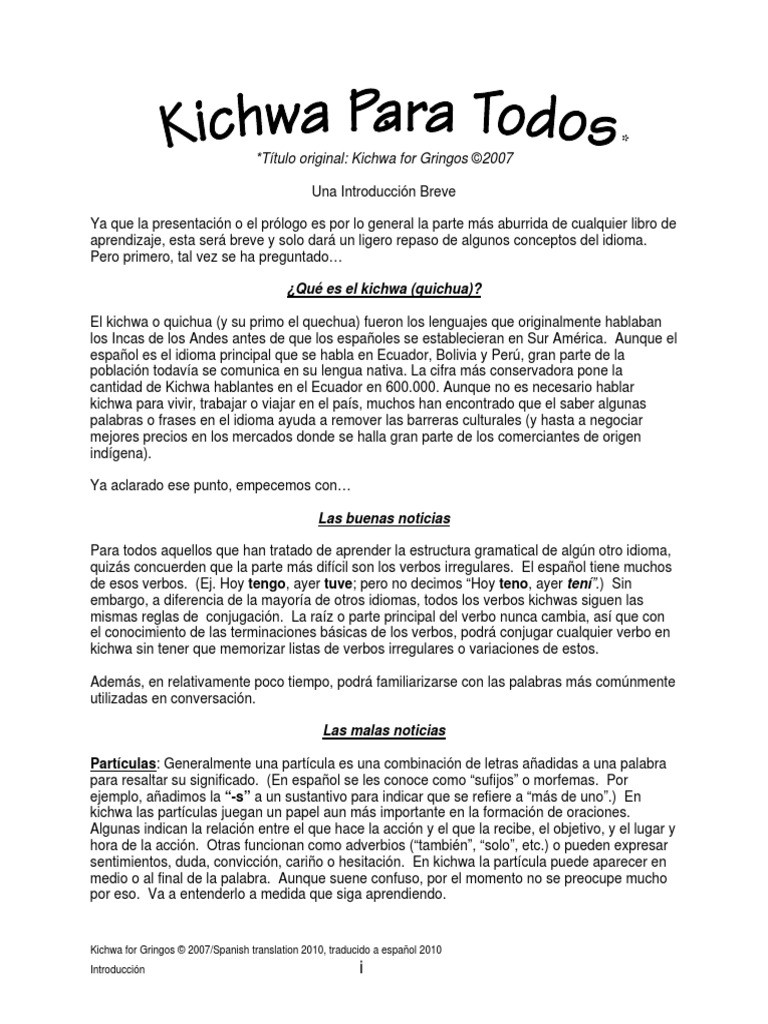 En kichwa todos los verbos son regulares y para conjugarlos se usa la raiz del verbo llamka na. Channel ucvspiae8xp4w6fqknycirvg view as subscriber www. Channel ucvspiae8xp4w6fqknycirvg view as subscriber www.