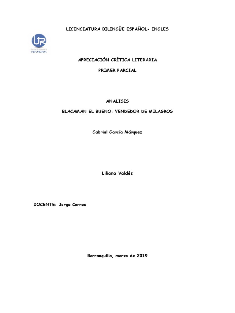 Y mi único consuelo era el deseo de que la vida me diera tiempo y fortuna para desquitarme de tanta infamia con otros martirios peores. Lectura de análisis blacamán el bueno. Vendedor de milagros es un cuento de gabriel garcía márquez el cual narra la historia de un estafador llamado blacamán.